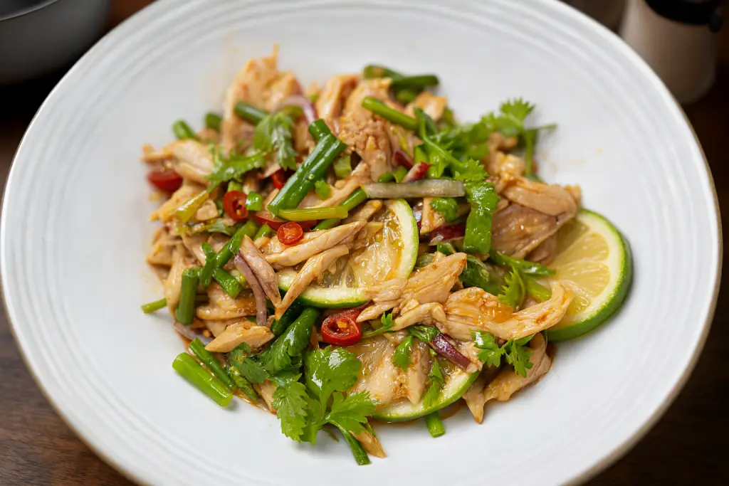 היום, הכנתי את המנה הזו שוב – אלא שכאן, במזרח התיכון, הבריזה היבשה מחליפה את הלחות החמה של סצ'ואן, אז הפחתתי את הצ'ילי והוספתי יותר חמיצות. הקרנצ'יות המתוקה של בצל סגול, הרעננות של ליים, המרירות העדינה של כוסברה, ורכות העוף – נשזרים יחד כמו מנגינה מוכרת עם בית חדש ורענן.