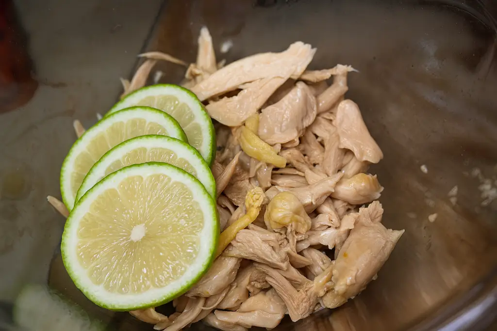 עיר הולדתי היא בסצ'ואן. בסתיו ובחורף, העוף בדרך כלל נכנס למרקים סמיכים ומעלים אדים, שולח חום אל הלב והבטן. אבל בקיץ, אנחנו מעדיפים להגיש אותו קר – כמו סלט, אך עם החריפות והרעננות הייחודית של סצ'ואן. ג'ינג'ר ושום, שמן צ'ילי, רוטב סויה וחומץ מתערבבים בקערה ליצירת טעם שאין לו תחליף.