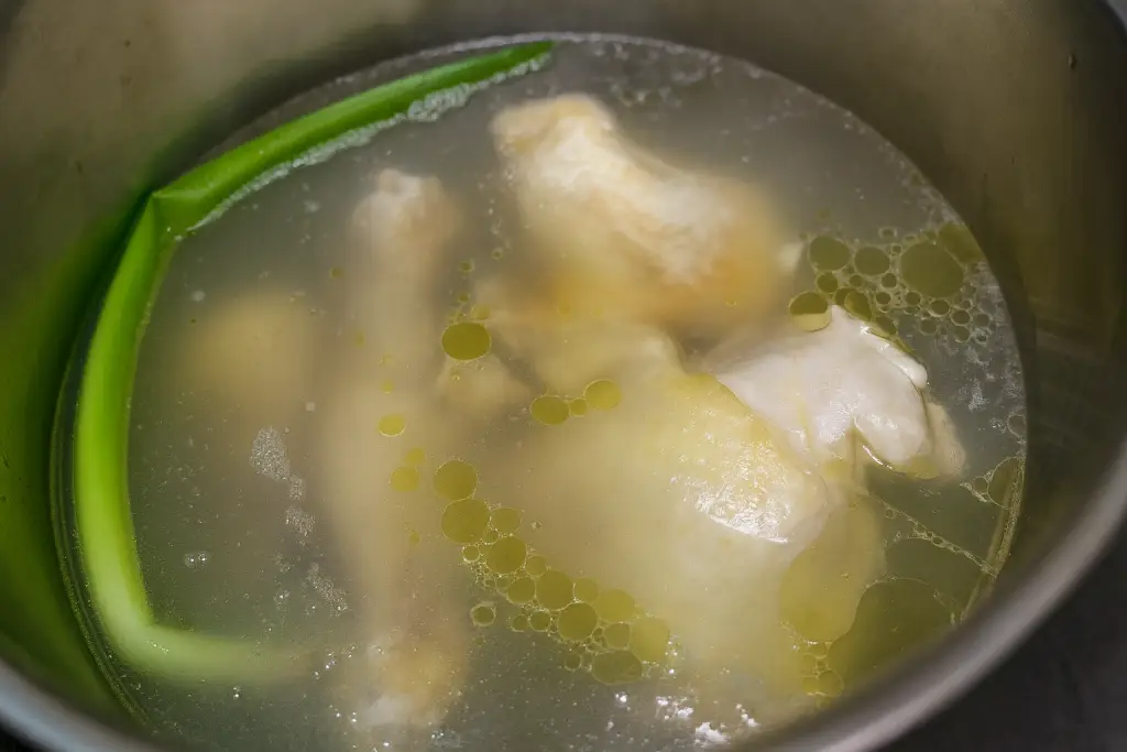 1. שימי את העוף במים קרים עם בצל ירוק, ג'ינג'ר ויין בישול. בשלי כ־30 דקות על אש נמוכה.